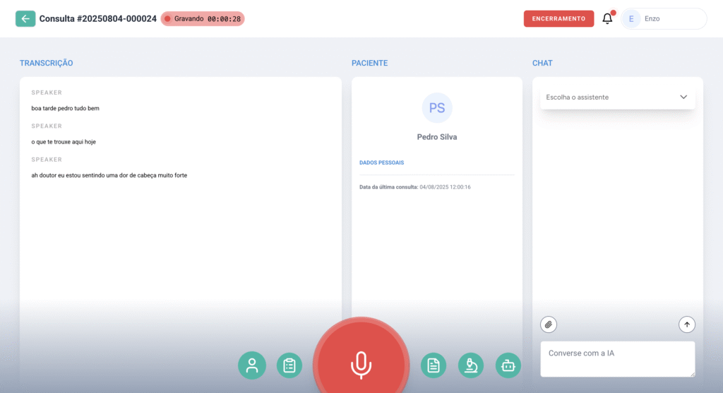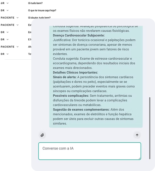 Automatizamos documentação clínica, oferecemos suporte clínico durante consulta e um Chat com assistentes de IA especializados por especialidade. Tudo em um só sistema que é integrado a um prontuário digital e agenda.